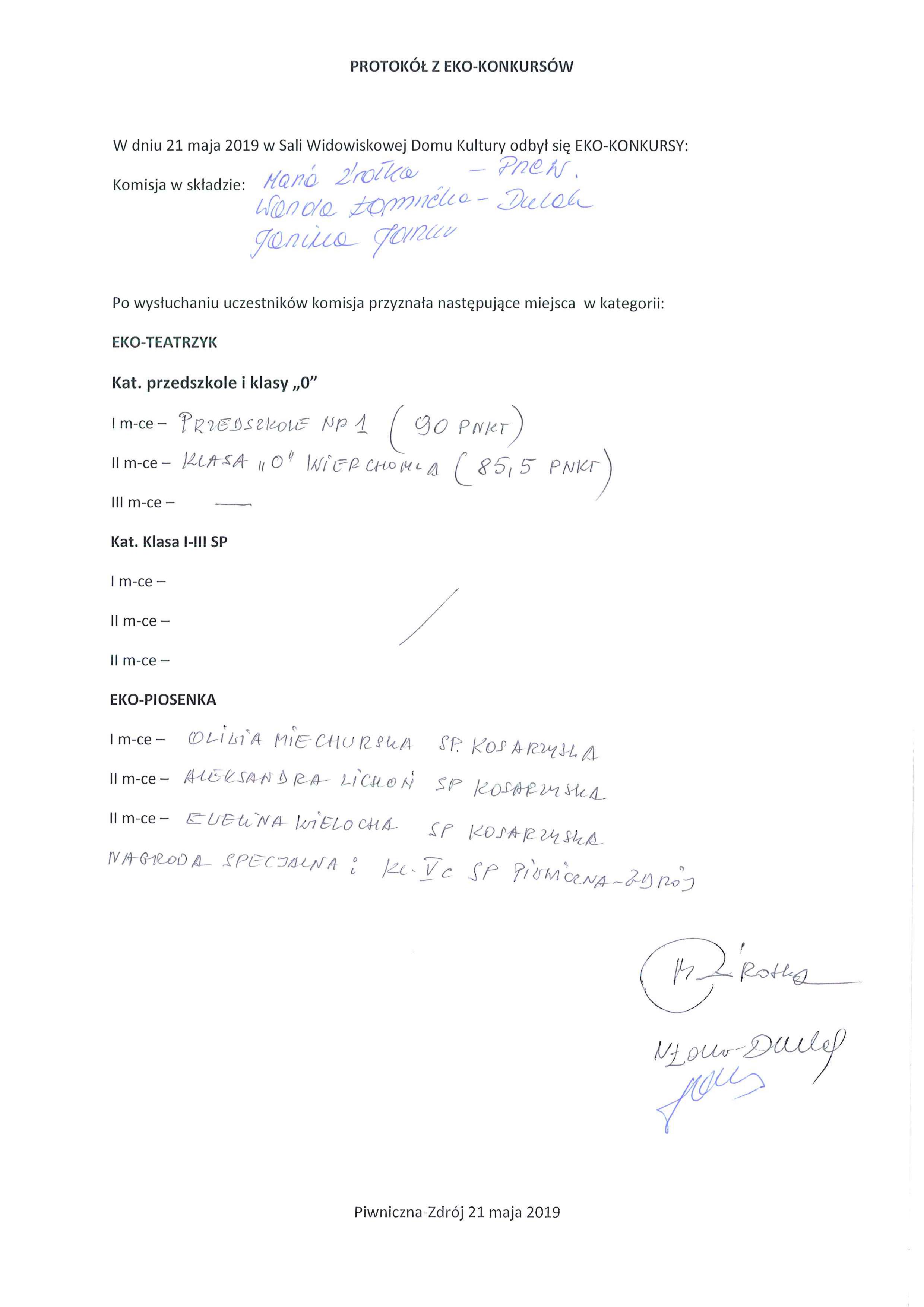 Ekokonkursy - wyniki