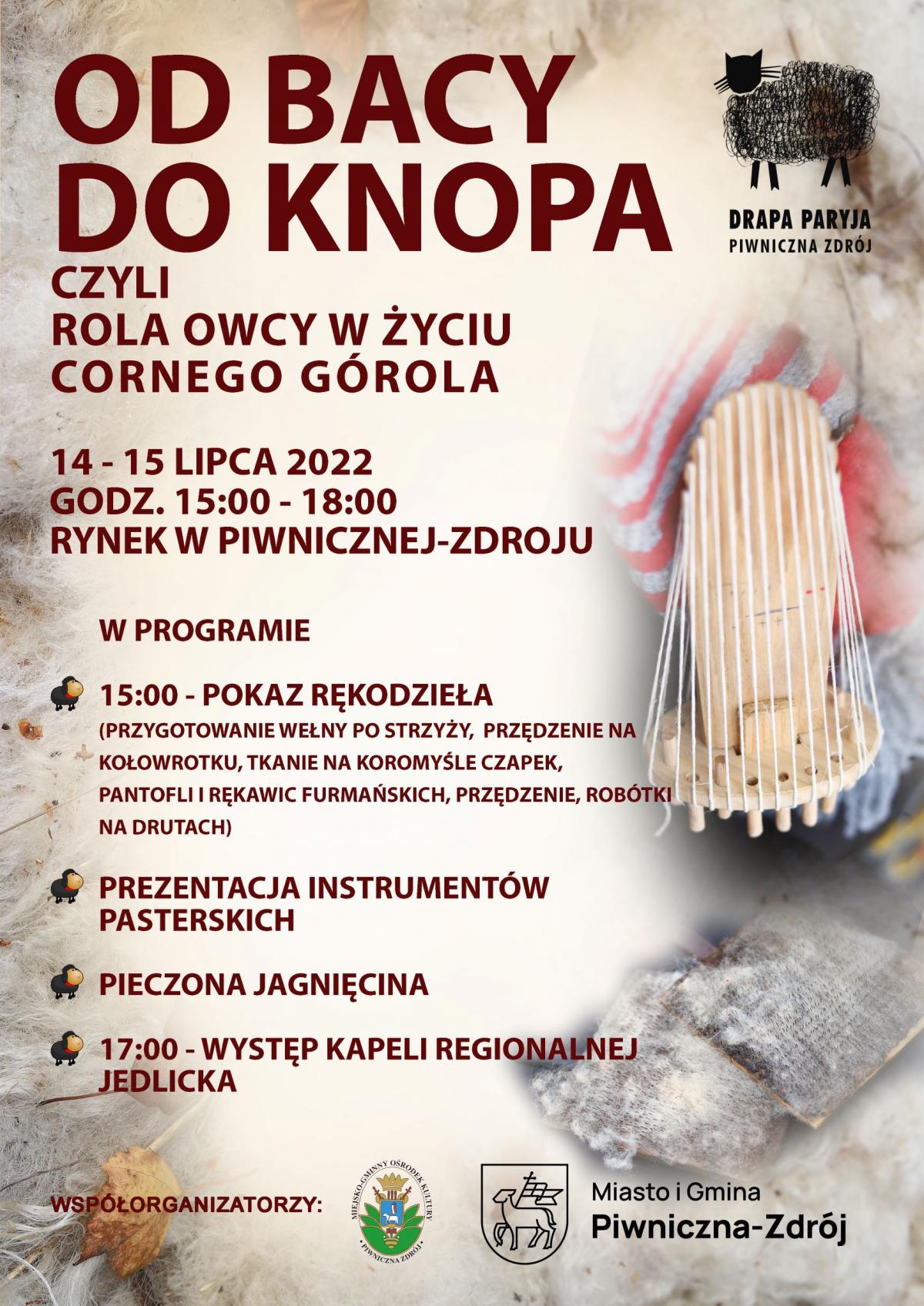 15.00 - POKAZ RĘKODZIEŁA (przygotowanie wełny po strzyży, przędzenie na kołowrotku, tkanie na koromyśle czapek, pantofli i rękawic furmańskich, przędzenie, robótki na drutach)
