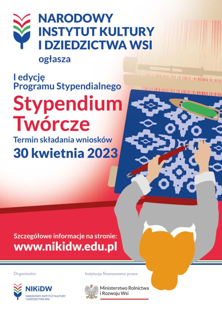 WIĘCEJ INFORMACJI: https://nikidw.edu.pl/2023/04/03/program-stypendialny-dla-tworcow-ludowych-nabor-trwa-do-30-kwietnia/