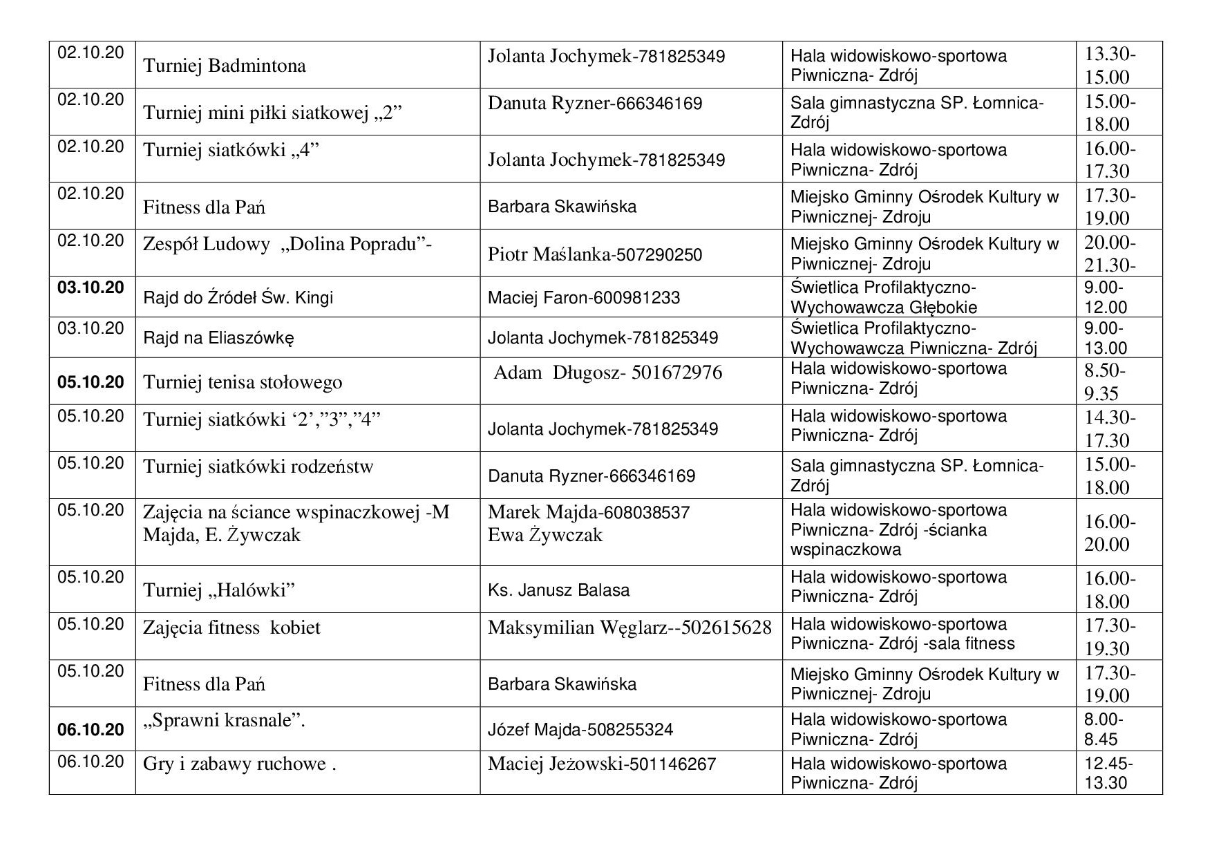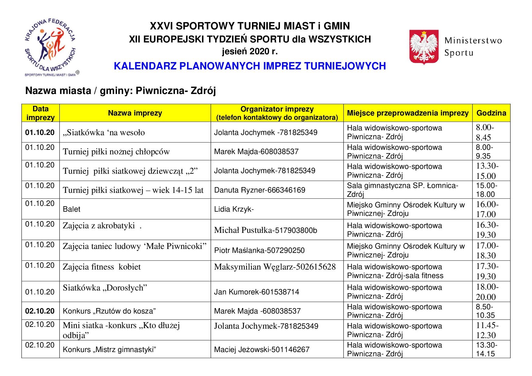 Drukuj Powrót do poprzedniej strony Kalendarz planowanych imprez turniejowych Miasto i Gmina Piwniczna-Zdrój 01-07.10.2020 r. 25.09.2020 9:44 Treść